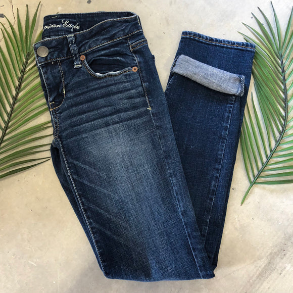 Super stretch skinny jeans from AEO. Size 0 Short. In seam 28 inches.